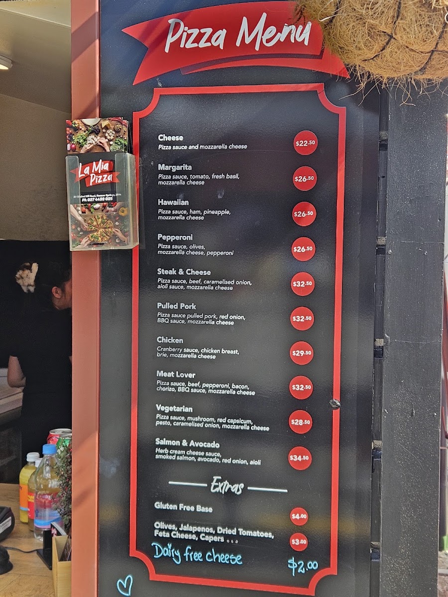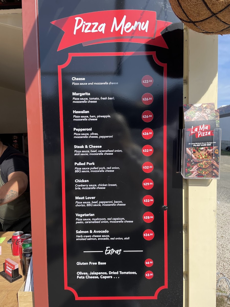 Welcome to La Mia Pizza, your go-to spot for delicious takeaway pizza in the heart of Hanmer Springs. Nestled at 20 Conical Hill Road, this charming eatery offers a mouth-watering selection of pizzas that are sure to satisfy any craving. With options like the classic Cheese at NZ$22.50 and the savory Pulled Pork at NZ$32.50, there's something for every palate.
